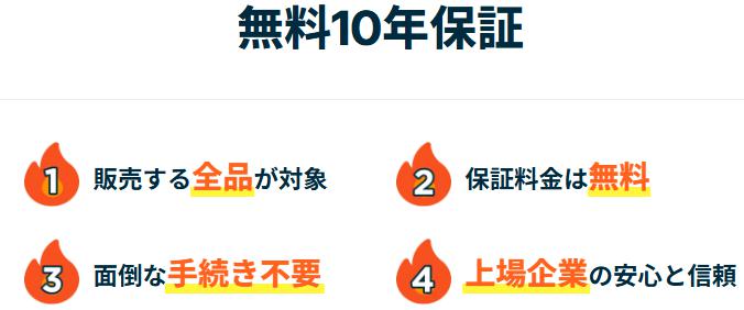 10年の商品保証(無料)はあるか?